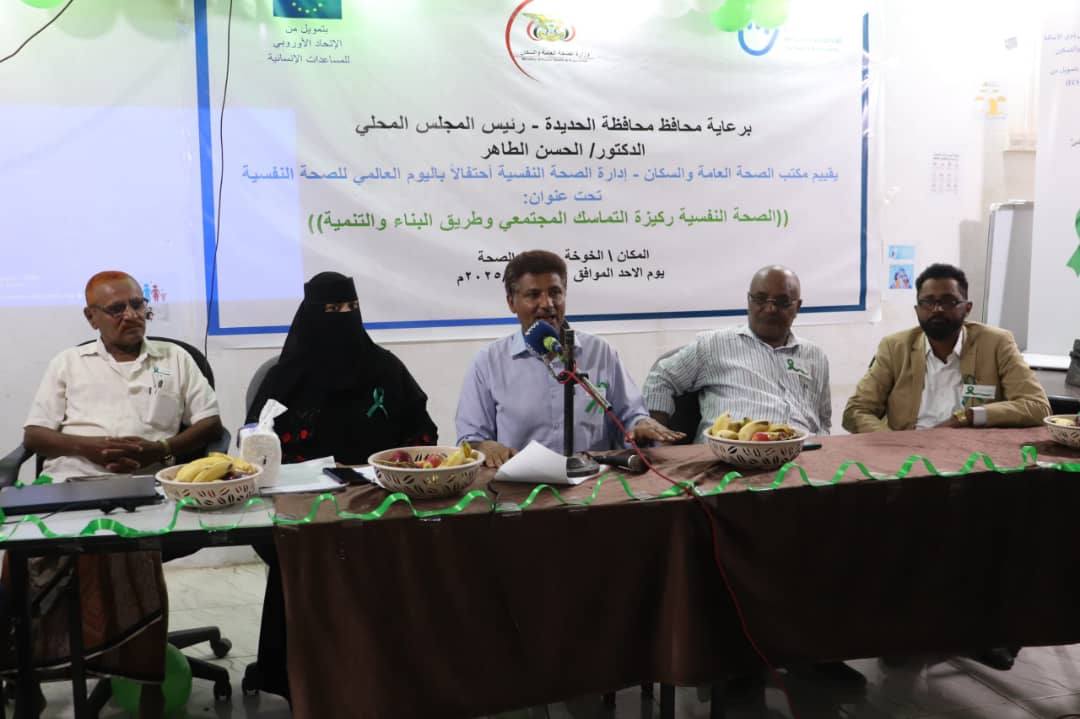 #إعلام_الحديدة نظم مكتب الصحة بمحافظة الحديدة، بالتعاون مع إدارة الصحة النفسية في منظمتي فور هيومن والهاندي كاب، اليوم، احتفالاً بمناسبة اليوم العالمي للصحة النفسية في مدينة الخوخة، تحت شعار "الصحة النفسية