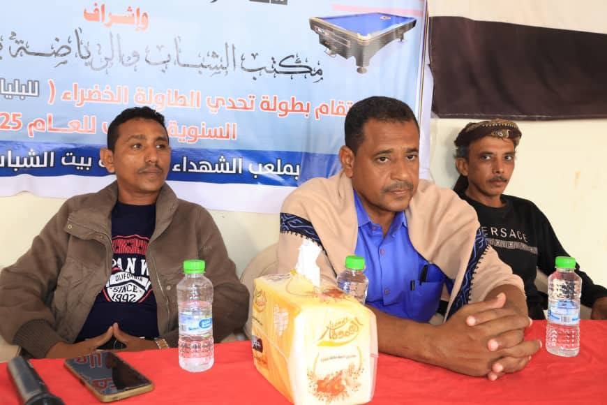 انطلقت، بطولة تحدي الطاولة الخضراء السنوية الأولى لمحافظـة الحديدة 2025م، والتي تشمل مسابقات البلياردو والسنوكر والجيم، اليوم، في قاعة الشهيد ماهر شعبان بمنشأة بيت الشباب والرياضة في الخوخة، برعاية وزير الشباب والرياضة نايف البكري، ومحافظ الحديدة الدكتور الحسن طاهر.