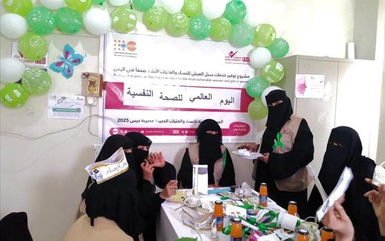 #اعلام_حيساحتفلت المساحة الآمنة للنساء والفتيات التابعة لمنظمة فور هيومن، باليوم العالمي للصحة النفسية في مديرية حيس بمحافظة الحديدة، ضمن أنشطة مشروع توفير خدمات سبل العيش للنساء والفتيات الأشد ضعفا في اليمن،